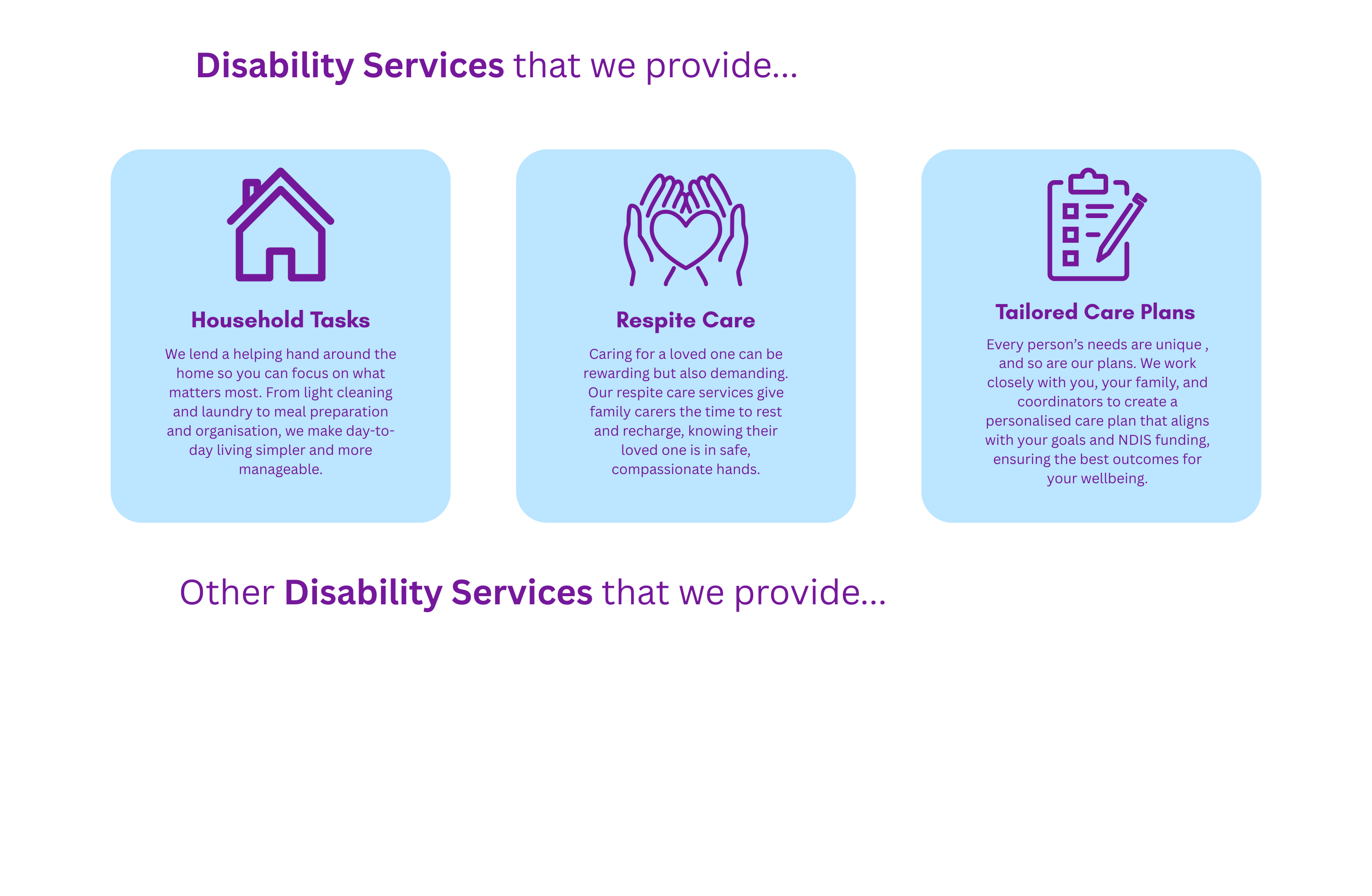 We provide personal care, transport assistance, social support, therapy coordination, and community participation, all tailored to your NDIS plan.
